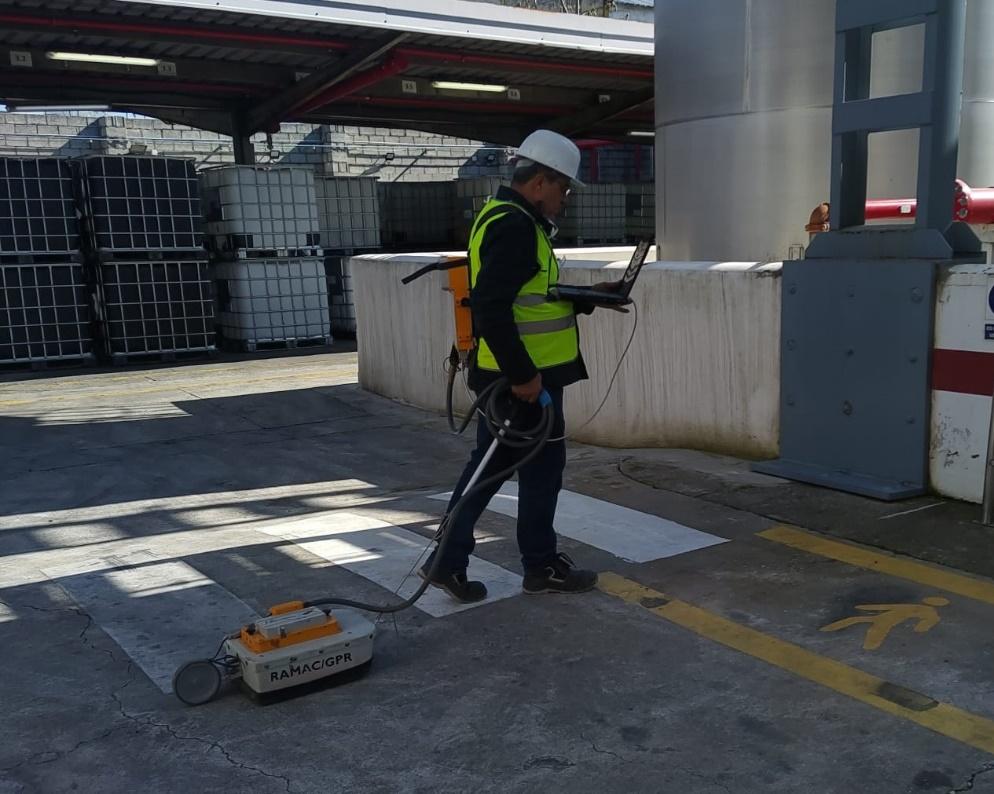 Detección de cavidades mediante Reconocimiento Geofísico con Georradar y Potencial Eléctrico Natural en Instalación Industrial