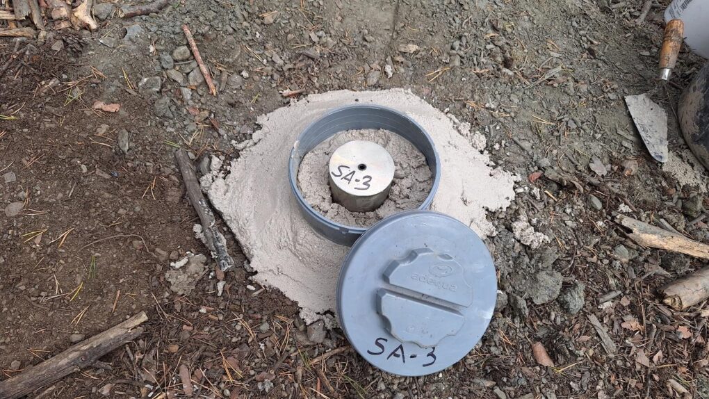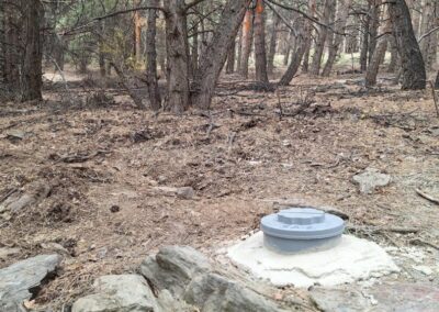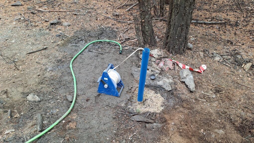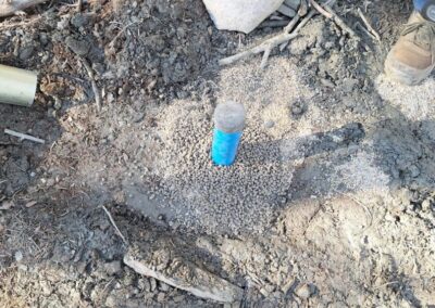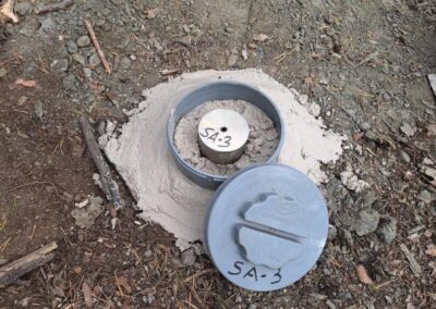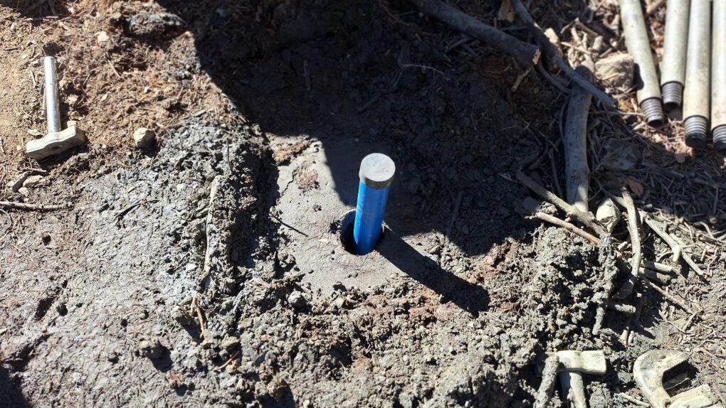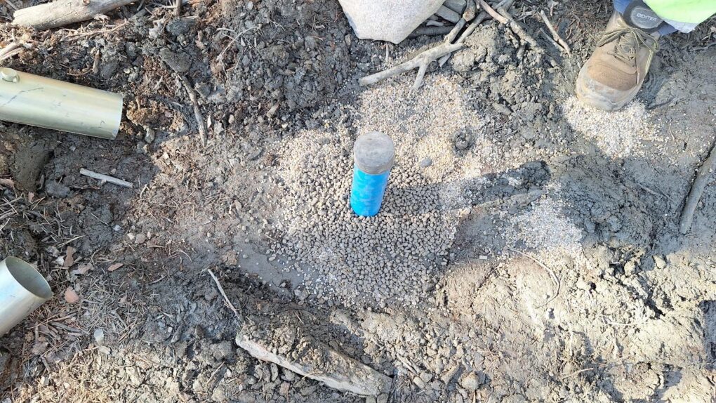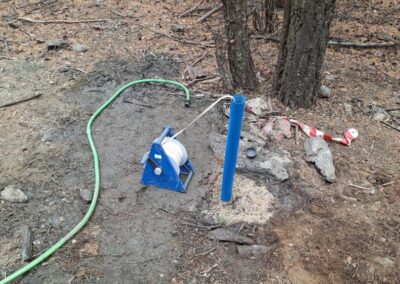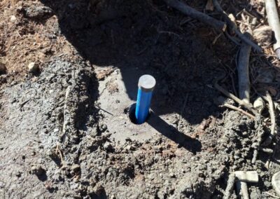 Tras la perforación y limpieza del taladro hasta la profundidad final, se instala tubería piezométrica de PVC de 2” en tramos con filtro y tramos ciegos roscados para evitar filtraciones por las juntas. Se dispone de tapón en la base de la tubería piezométrica y tapón de superficie para evitar entrada de elementos externos.